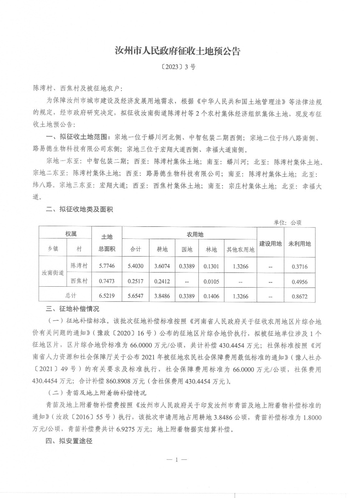 征收土地预公告〔2023〕3号