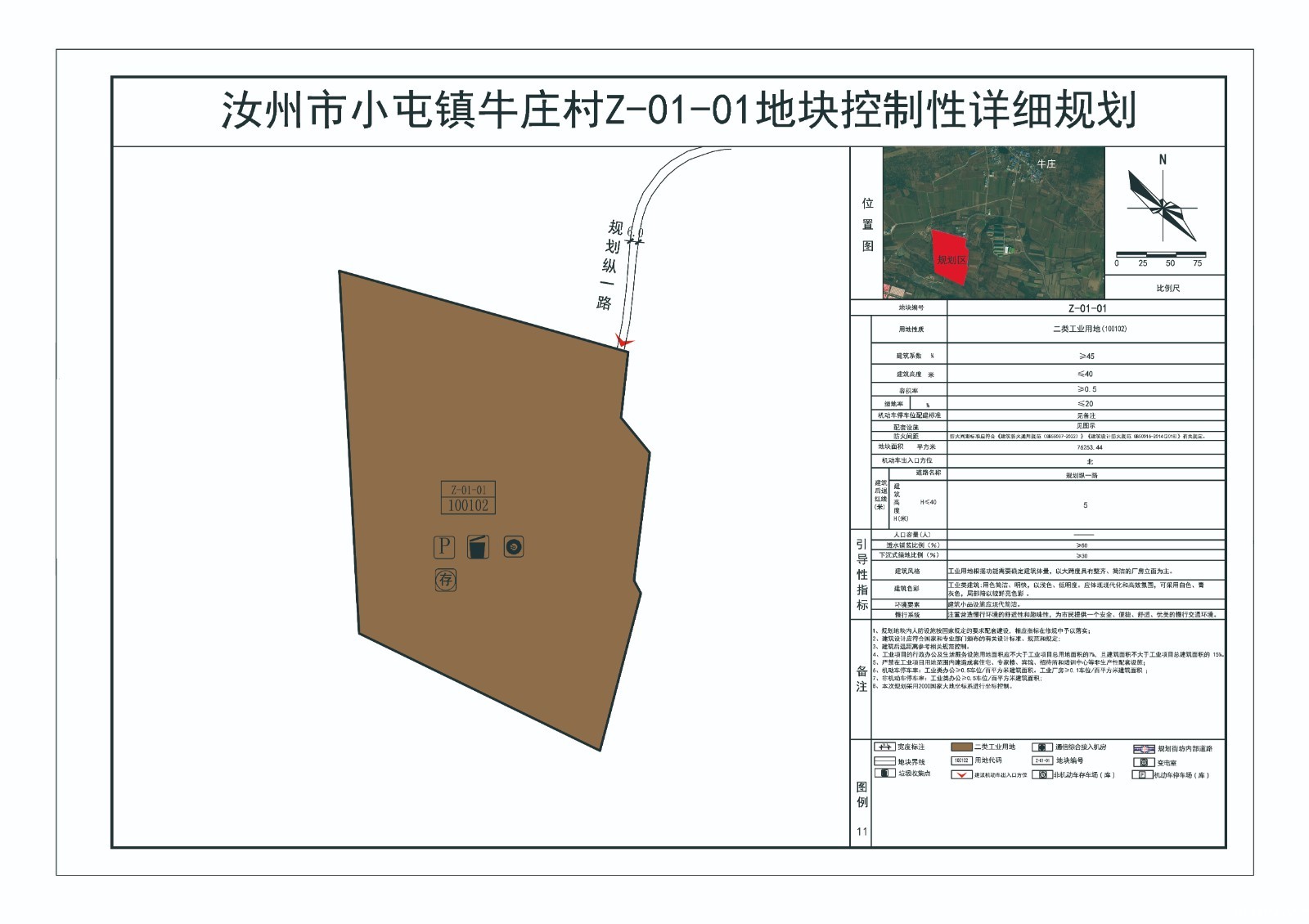 规划Z-01-01地块为二类工业用地(100102)(建筑系数≥45%,建筑高度≤40米,容积率≥0.5,绿地率≤20%)。
