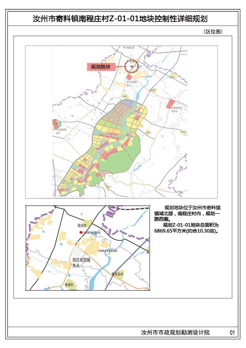 规划范围:规划地块位于汝州市寄料镇镇域北部,南程庄村内,规划一路西侧的Z-01-01地块。