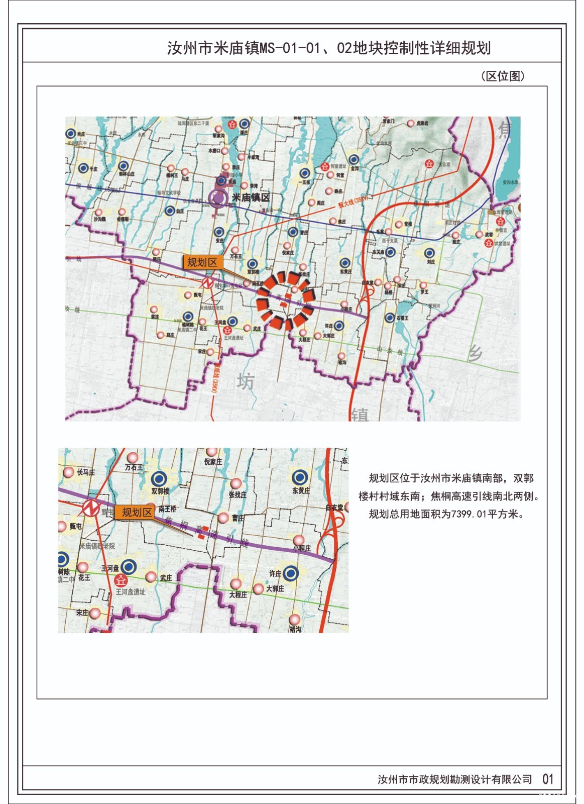 规划范围:规划地块位于汝州市米庙镇南部,双郭楼村村域东南,焦桐高速引线南北两侧。规划总用地面积为7399.01平方米。