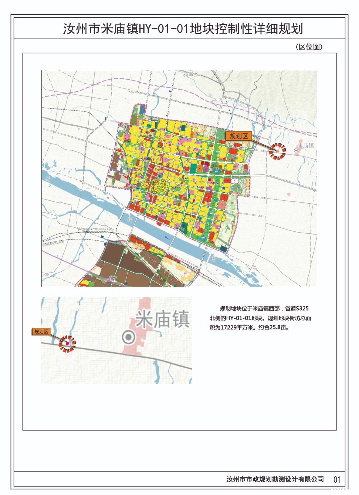 用地位置:汝州市米庙镇镇域西部,省道S325北侧的HY-01-01地块。