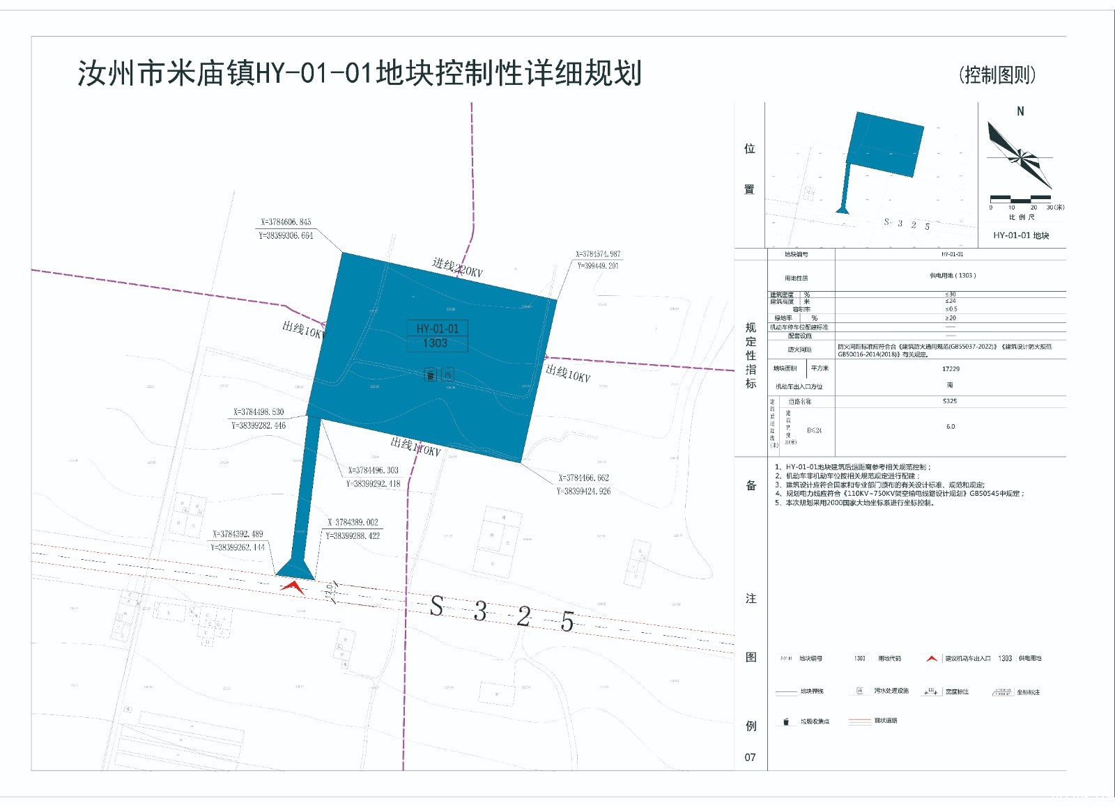 规划HY-01-01地块为供电用地(建筑密度不大于30%,建筑高度不大于24米,容积率不大于0.5,绿地率不小于20%)。